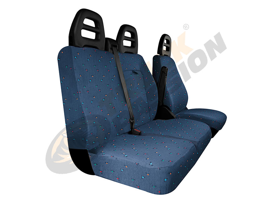 Fundas de asientos completas a medida, adaptables a IVECO DAILY desde 2014. Respaldo de pasajero sin mesa.